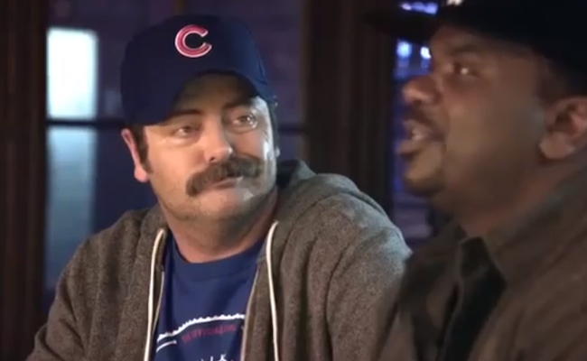 This time it’s Nick Offerman and Craig Robinson instead of Baldwin and Krasinksi, and the Chicago Cubs and Chicago White Sox instead of the New York Yankees and Boston Red Sox. The result of their escalating argument peppered with elementary school style cutdowns reminiscent of Yo Mama jokes, however, provides a feeling of fondness for New Era similar to the one you got when you watched the original vids.