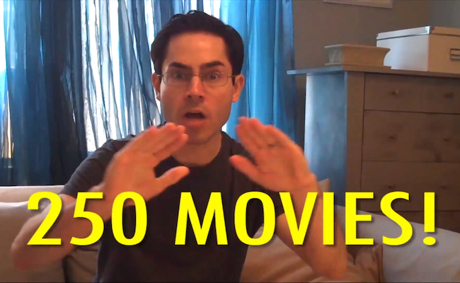 Malkoff’s goal is to watch 250 movies from April 15 to May 14—over 400 hours in a month. For those of you too lazy to do the math, that’s 13 hours a day.