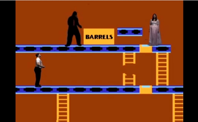 DK:TM features a green-screened guy overlayed on a colorful moving background similar to the one in the game, using a simple image editor to create early 1990’s block video game level graphics. The lesson is that you don’t have to be a fine artist or endure a millennium of painstaking labor animating your magnum opus frame-by-frame. Instead, there are some really nifty programs such as After Effects and Photoshop that can transform an ordinary object (such as an orange) into a network-worthy character.