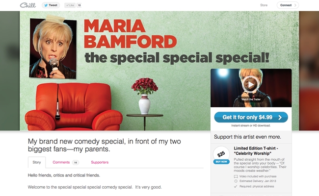 At the Tubefilter Meetup on December 4th, our panelists will discuss the viability of pay-to-view online video platforms. In advance of that event, the Meetup’s sponsor has rolled out its own premium distribution service. Distribution site Chill has opened up Chill Direct, a pay-to-view service that launched on November 29th with Maria Bamford‘s comedy special as the featured event.