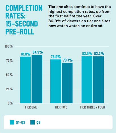 Sure enough, viewers are completing their ads. For a 15-second pre-roll, more than three quarters of all viewers watch the entire ad, whether they’re forced to or not. Maybe that stat will discourage advertisers from simply plugging one of their videos into an ad campaign to boost its view count.