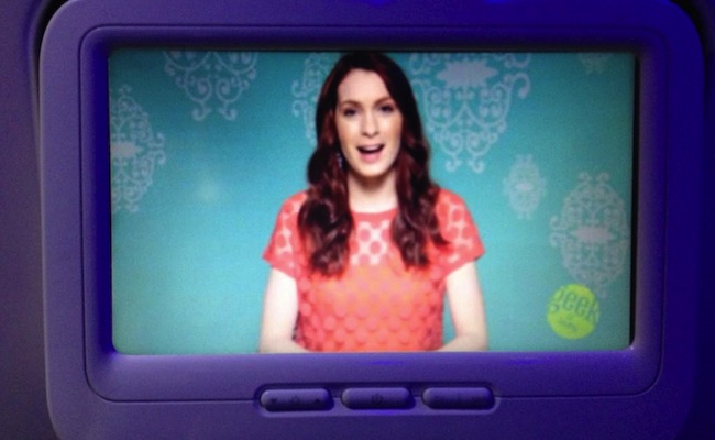 snapped a shot of herself on screen on a recent Virgin America flight. The perennial online video star’s programming from her YouTube channel Geek & Sundry makes up a portion of the YouTube slate airing on the airline. Other titles include, Warner Brothers’ H+ The Digital Series, WIGS’ Blue, Crash Course and Barely Political’s The Key of Awesome.Traveling on Virgin America sometime soon? Shows us how you fly and snap a picture next time you’re watching YouTube programming 30,000 feet or more in the air.