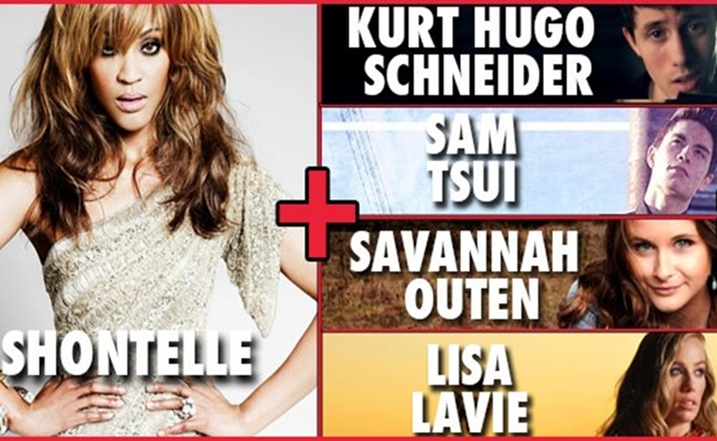 Vanilla Ice isn’t the only Streamys performer who will collaborate with YouTube stars. When up-and-coming singer-songwriter Shontelle takes the stage at the Hollywood Palladium, she will be joined by four big-voiced YouTubers, all of them bursting with talent. On paper, the fivesome of Shontelle, Sam Tsui, Kurt Hugo Schneider, Savannah Outen, and Lisa Lavie seem to have a lot in common. They are all in their twenties, they all have millions of YouTube views, and each one can really belt it out. What’s fascinating is the different paths each musician took to stardom.