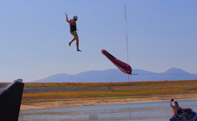 DST: My friend’s clothing company Vooray came up with the original idea. As far as where it ranks with crazy stunts…I’ve had more people knock out unconscious on those videos than any other. The first one we did, we had three people get knocked out from the impact of the water, and in the most recent one, we had one person get knocked out. So it’s definitely up there on the top five for crazy stunts.