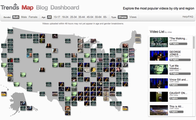 YouTube offers a diverse array of tools for its creators, and a new addition to the arsenal will help answer burning questions like ‘How do viewing habits change by age?’, ‘What are women watching as opposed to men?’, and ‘What does Des Moines, Iowa think?’. YouTube has launched a Trends Map that allows users to break down popular videos by region, age, and gender.