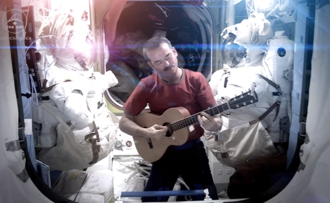During Chris Hadfield‘s nearly five months aboard the International Space Station, the Canadian astronaut gained a substantial social media following. Hadfield’s pithy tweets and informational YouTube videos have made his a cult hero on the Internet (a title helped on by his epic caterpillar moustache). Hadfield has safely returned to Earth, but before he departed the ISS, he gave the Internet a treat in the form of a super cool cover of David Bowie’s ‘Space Oddity’.