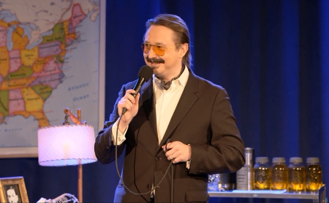 Hodgman, best known for his role as a correspondent on The Daily Show as well as his many appearances alongside Justin Long in the popular Mac vs. PC ads, performed the special in Brooklyn on December 21. In line with his usual schtick, Hodgman purports to be an expert on everything while actually acting like a total kook. His attire–a suit, aviators, and bare feet–only reinforces this characterization. Check out a small bit from the special, where he relates hockey to the four classical elements: