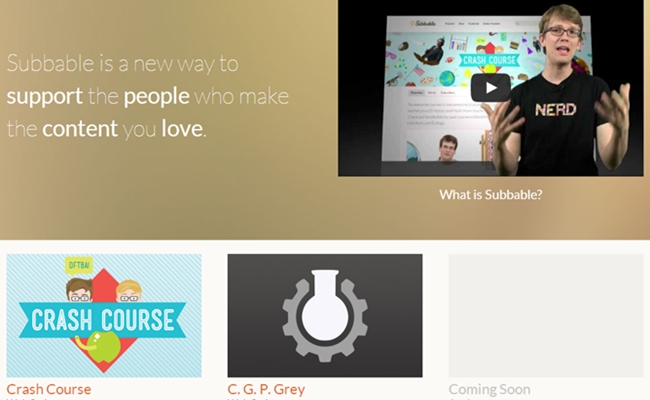 For the uninitiated, Subbable asks users to pay as much as they want to subscribe to a particular show, and shows how much funding each show needs to reach its monthly goal. The Vlogbrothers’ Crash Course show now has more than 10,000 subscribers on the site, but is still only 83% of the way to its monthly funding goal. Meanwhile, CGP Grey‘s Subbable page has already raised 174% of its necessary monthly budget, because CGP Grey is the best