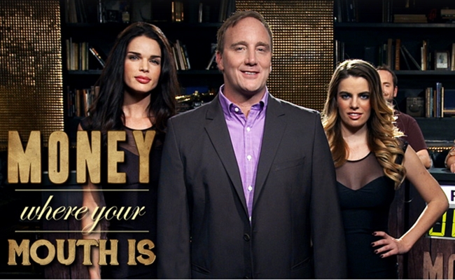 Money Where Your Mouth Is makes it very clear who the intended audience is. Each episode features three male friends, who must stand behind podiums and answer questions about sports, movies, and TV. Later, to switch things up, the men must show off “man-skills”, such as their ability to craft a Heisman trophy out of clay. To wrap things up, the two finalists have a debate about a sports or pop culture subject, with the victor gaining bragging rights over all his friends.