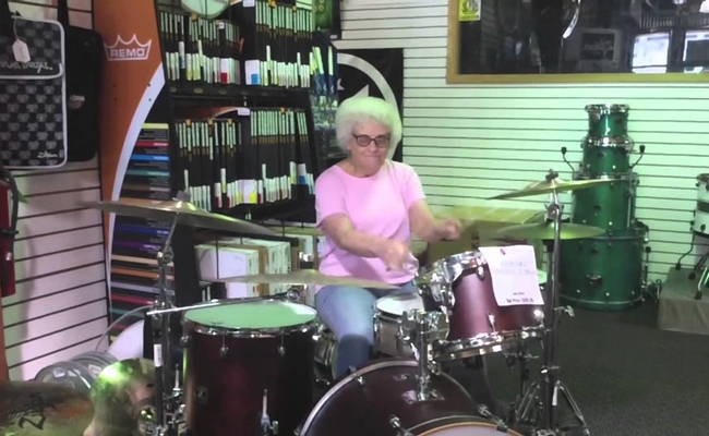 “Our drum shop had been open for only about a year at the time, and every 3 months this older woman would come in, kindly ask if she could play one of our kits, and then proceed to play a very well orchestrated drum solo for about three minuets. After that she would leave without saying anything to anyone, it was bizarre!