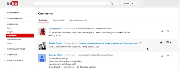 “You can easily remove comments, flag comments for spam or abuse, give a thumbs up, or click over to the video watch page and reply,” wrote YouTube Engineer Patrick Doyle on the YouTube Creator Blog. “Quickly toggle between comments that are published on the channel, comments that are pending channel manager approval, or comments that have been marked as spam.”
