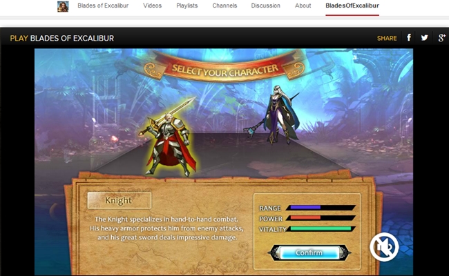 Gaming is the most popular video category on YouTube, and at least one developer has decided to fully integrate a game within the YouTube platform. Kabam, a developer that specializes in multiplayer, web-based flash games like Realm of the Mad God, has made a demo of its upcoming game Blades of Excalibur available on YouTube.