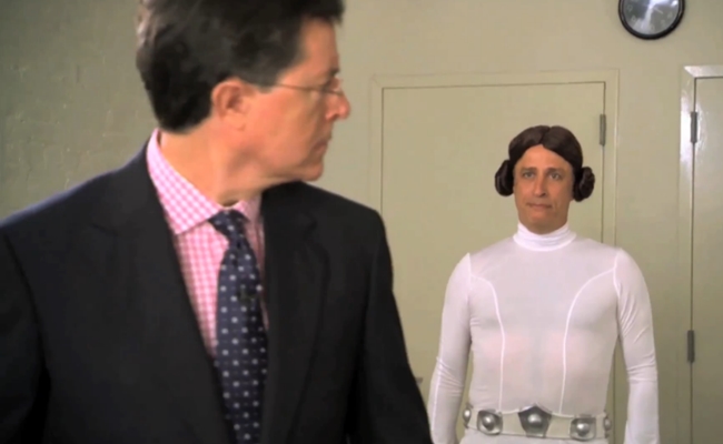 In the video, Colbert and Stewart describe Force for Change, discuss the grand prize of the Omaze campaign, and square off in a duel to determine which one of them is the bigger Star Wars fan. Ultra-nerd Colbert would definitely take that title in real life, though Stewart’s willingness to dress up in a perfect Princess Leia cosplay cannot be ignored.