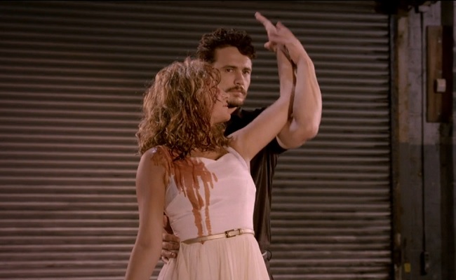 The first episode finds Franco performing “Dirty Dancing Dogs,” a combo of Reservoir Dogs and Dirty Dancing. It’s oddly comical and disturbing at the same time. Franco performs as both Michael Madsen’s Mr. Blonde and Patrick Swayze’s Johnny Castle, first cutting the ear off a woman and then proceeding to dance with her as blood is thrown on them from off-camera.
