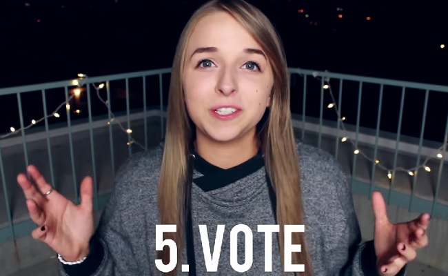 Having just turned 18 herself, Jenn created one of her signature list videos where she outlines five things viewers can do once they turn 18. In addition to getting tattoos and leasing a house, she tells recently-inducted young adults to research issues important to them and register to vote on OurTime.org. She then tells her viewers to take that final (yet vital) last step of voting. As she reasons it, you wouldn’t let other people choose the color of your hair or what you’ll watch on Netflix.