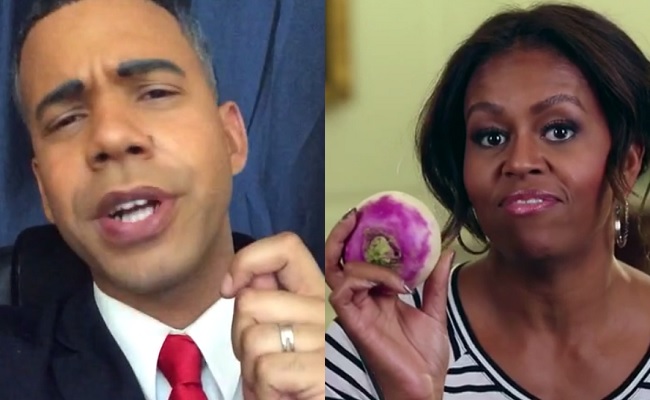 On October 14, Obama participated in a Twitter session called #AskTheFirstLady. The YouTuber and Vine star Iman Crosson (known to online video fans as Alphacat and famous for his Barack Obama impersonations) posed an innuendo-laden question dressed as the President: “How many calories do you burn every time you ‘turn up’?!”