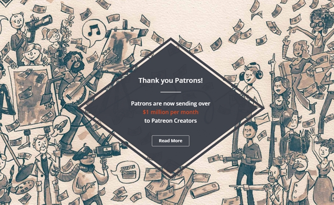 Patreon has crossed the seven-digit mark. According to an October post on the crowdfunding site’s official blog, it has now surpassed $1 million in monthly payouts to its creative partners.
