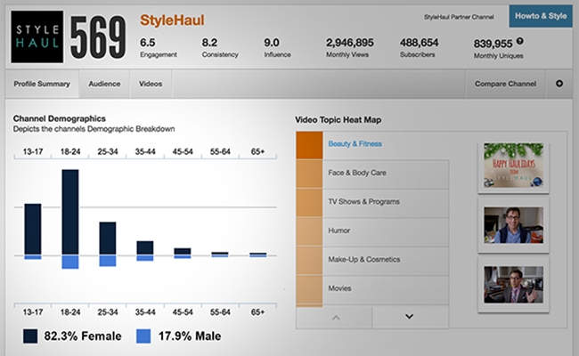 On the same day it announced its new funding, Outrigger also showed off its new demographic initiative. As seen in the above image, the new statistics are capable of breaking down individual YouTube channels by age and gender across industries, subject matters, and a 1,500-line taxonomy defined by data from Google Search. This provides key information for advertisers who are looking to target specific consumers on the web, and it combines well with OpenSlate’s other statistics, including its proprietary SlateScore metric.