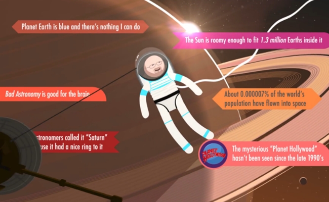 As with other Crash Course videos, the first episode of the astronomy course combines Plait’s narration with colorful animations that appeal to the YouTube audience. Plait, who runs the “Bad Astronomy” blog for Slate, begins the episode with a quick overview of his subject. “Over the course of this series,” he states, “we’ll explore planets, stars, black holes, galaxies, subatomic particles, and even the eventual fate of the universe itself.”