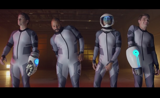 The Lazer Team trailer introduces viewers to Hagan (played by Burnie Burns), Zach (Michael Jones), Woody (Gavin Free), and Herman (Colton Dunn). The four leads unknowingly put on pieces of a power suit, created by the U.S. Government and intended for a Champion of Earth (Alan Ritchson) to help save the world from an impending alien attack. Unfortunately, the four men who come to be known as the Lazer Team are anything but competent when it comes to defending Earth.