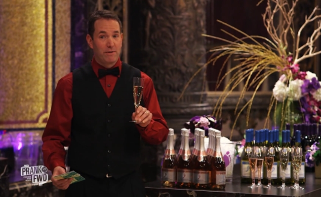 In each Prank It Fwd video, Break and its band of pranksters team up provide a heartwarming surprise for someone in need. In one of the new episodes, Break teams up with sponsor Barefoot Wine to provide a movie theater wedding for a cancer patient and her fiancée. Several partners from the Defy Media network join the fun: Greg Benson hosts, and Honest Trailers voice Jon Bailey lends his pipes to the fake movie trailer that serves as the episode’s defining prank.