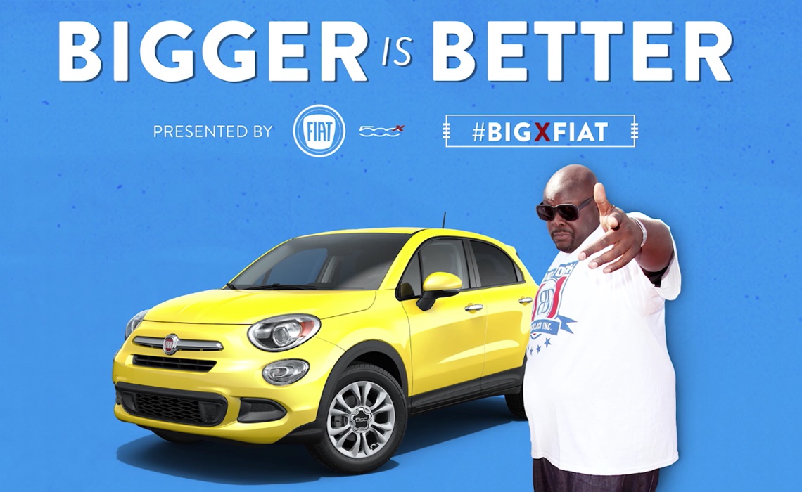 Bigger Is Better is sponsored by the Fiat 500X. At the beginning of each episode, Big Black, who explains how he’s “game to try just about anything,” uses the new crossover vehicle to seek out new adventures. He starts in the world of dance, where he tries his best to become a ballerina (or, as he soon learns is the proper term, a “ballerino”). He’s probably the biggest man to ever wear a tutu.