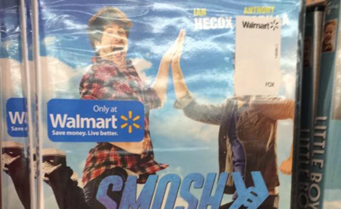 First, the necessary context: Smosh, which consists of Padilla and Ian Hecox, recently made the jump from YouTube to the big screen thanks to the release of Smosh: The Movie on July 24th. About a month later, on August 18th, the DVD version of Smosh: The Movie arrived at Walmart. Shortly thereafter, a Smosh fan encountered the DVD in the wild, and “flipped out a little” when she noticed a large Walmart sticker pasted on top of Padilla’s head.