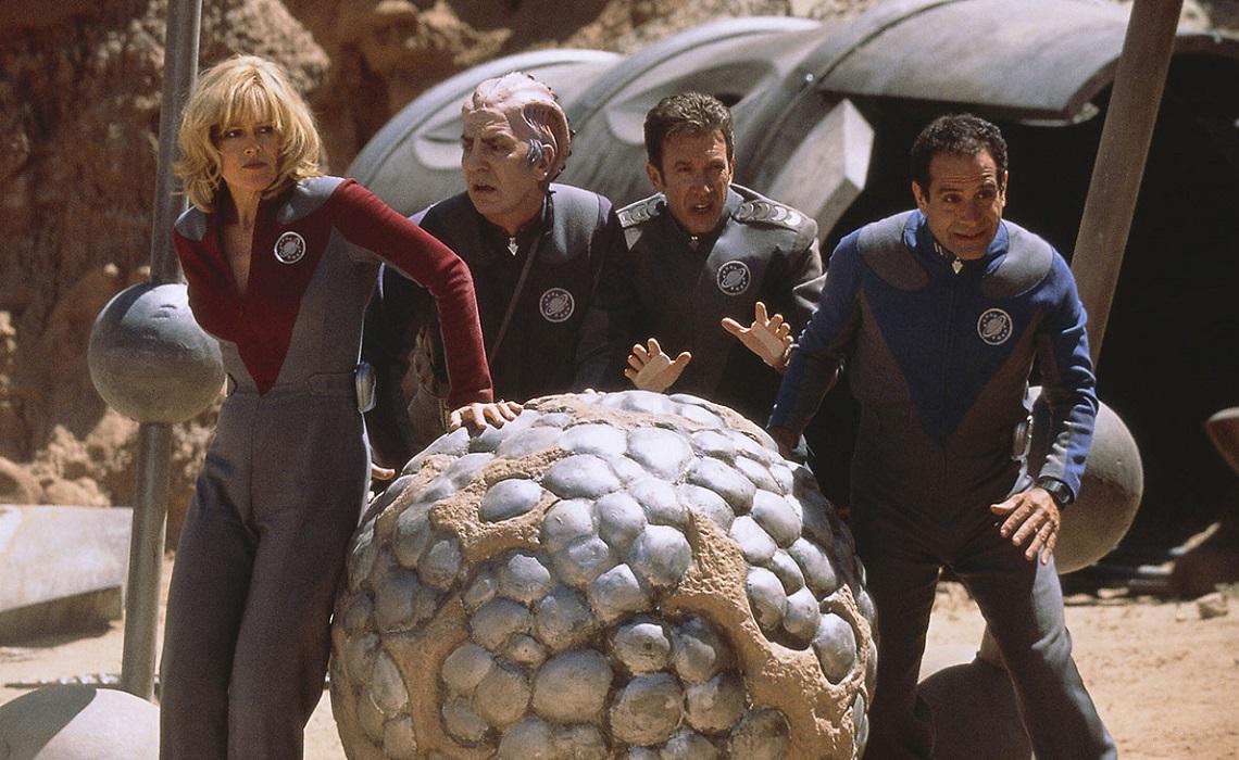 The Galaxy Quest film told the story of cast members from a cancelled Star Trek-like science fiction TV show, who are mistaken for real heroes and whisked away to space by simple-minded aliens to save them from a threatening race. The movie starred Tim Allen, Sigourney Weaver, Alan Rickman, Tony Shaloub, Sam Rockwell, Daryl Mitchell, Enrico Colantoni, and Justin Long.