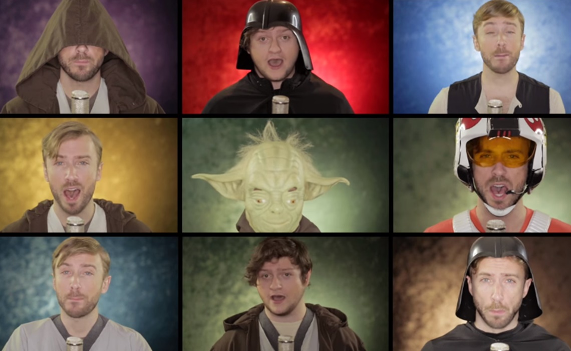 The Tonight Show medley featured dozens of voices across four of Star Wars’ most iconic tracks, but Hollens and Sky’s version ups the ante by featuring 135 different vocal lines. Hollens’ arrangements, as per usual, are terrific, and Sky surprises everyone by showing off a very capable singing voice.