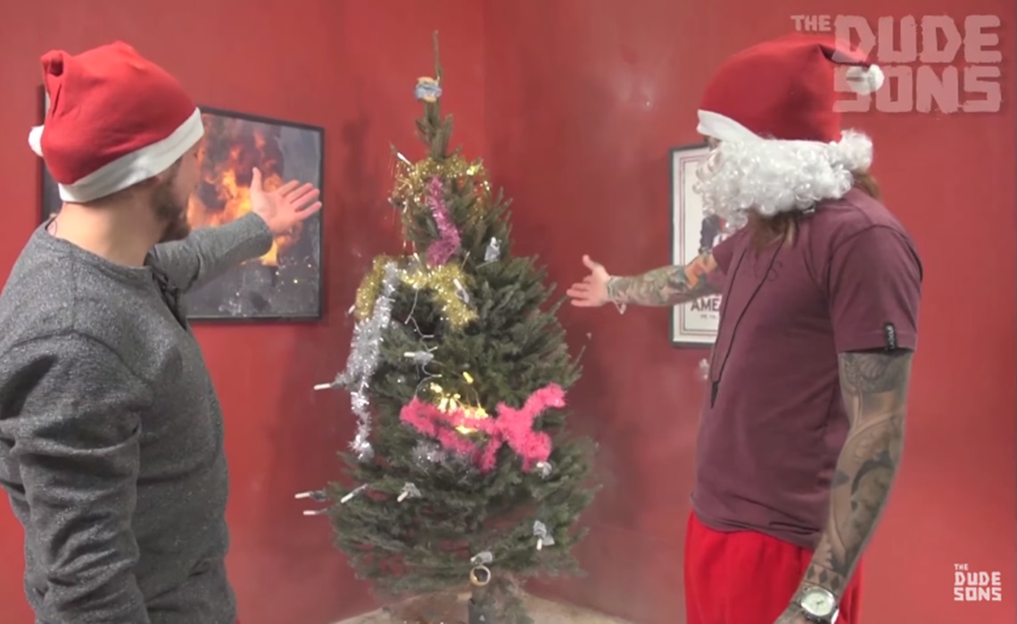 If you really waited until the last minute to set up your Christmas decorations, you should pay attention to The Dudesons, because the Finnish comedy team showed viewers how to create a festive tree in five minutes. In reality, if you attempt to copy these instructions, you will spend a much longer time following them–unless you happen to have an ornament cannon and a lot of glue lying around.