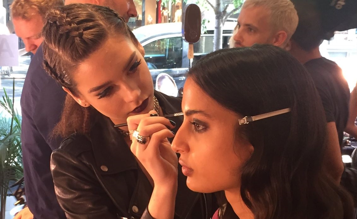 Steele served as co-key at the Rebecca Minkoff show yesterday alongside Gato, a Spanish makeup artist at Maybelline — the major mass brand for which Steele also serves as brand ambassador. The two worked together to devise the look, which seems to have included a smoky eye, and also selected the products used to achieve it. Steele and Gato also made the rounds to approve the work of other artists on the team, according to New York.