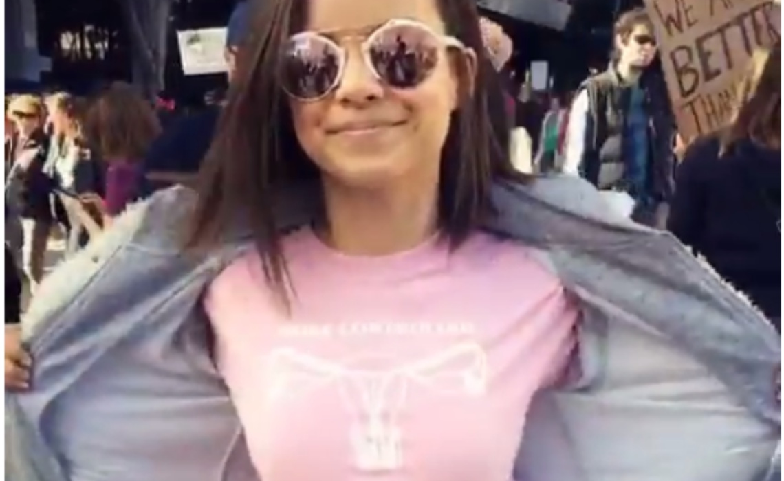 The women of YouTube used shirts, signs, and costumes to express their displeasure with Donald Trump’s attitude towards women and the pro-life, anti-Planned Parenthood proposals of his administration. Ingrid Nilsen (pictured above) made a topical fashion choice, Laci Green brought her girl-power brand of sex education to the streets, and Mamrie Hart and Grace Helbig showed up among 750,000 protesters in Los Angeles to advocate for their rights.