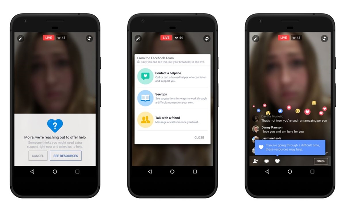 Following a rash of suicides in recent months in which people have taken their lives on camera during Facebook Live broadcasts, the social network unveiled today a handful of suicide prevention tools.