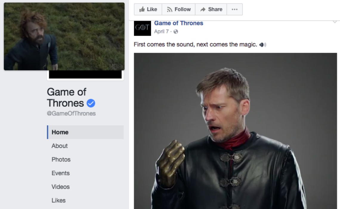 Facebook won’t pin a video unless the viewer interacts with it in some way, whether by turning the sound on or by clicking an icon that reads “continue watching while you use Facebook.” Toggling on that option moves the video to the corner of the screen and opens up the rest of the page for additional scrolling. Additional videos will continue to autoplay without sound, and if the user turns up the volume on one of them, the pinned video will be paused. I was able to use this feature to watch multiple pieces of Lannister-related media at once, as pictured above.