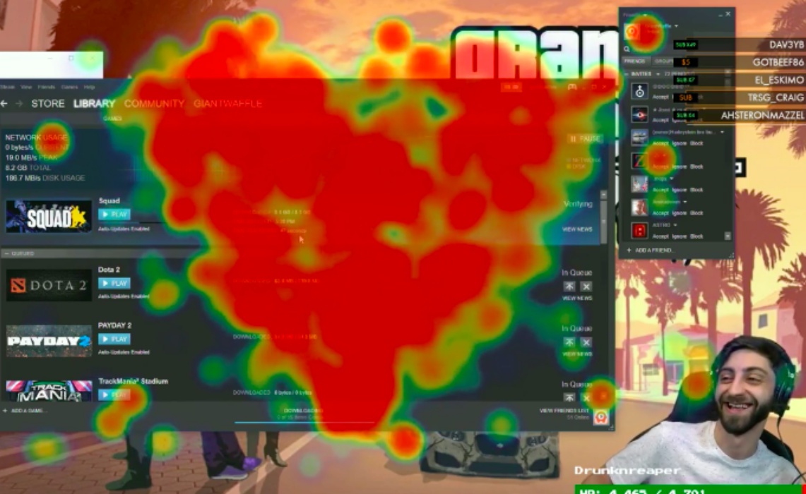 The list of Twitch extensions contains more than 20 choices at the time of the feature’s launch, with third-party developers like Streamlabs and Muxy delivering several new toys for streamers. The available extensions include a virtual pet that interacts with the on-screen action, game-specific trackers for titles like League of Legends, Hearthstone, and Rocket League, and a heat map that follows viewers as they move around the screen. Streamer GiantWaffle demonstrated the last of those three examples in a recent clip: