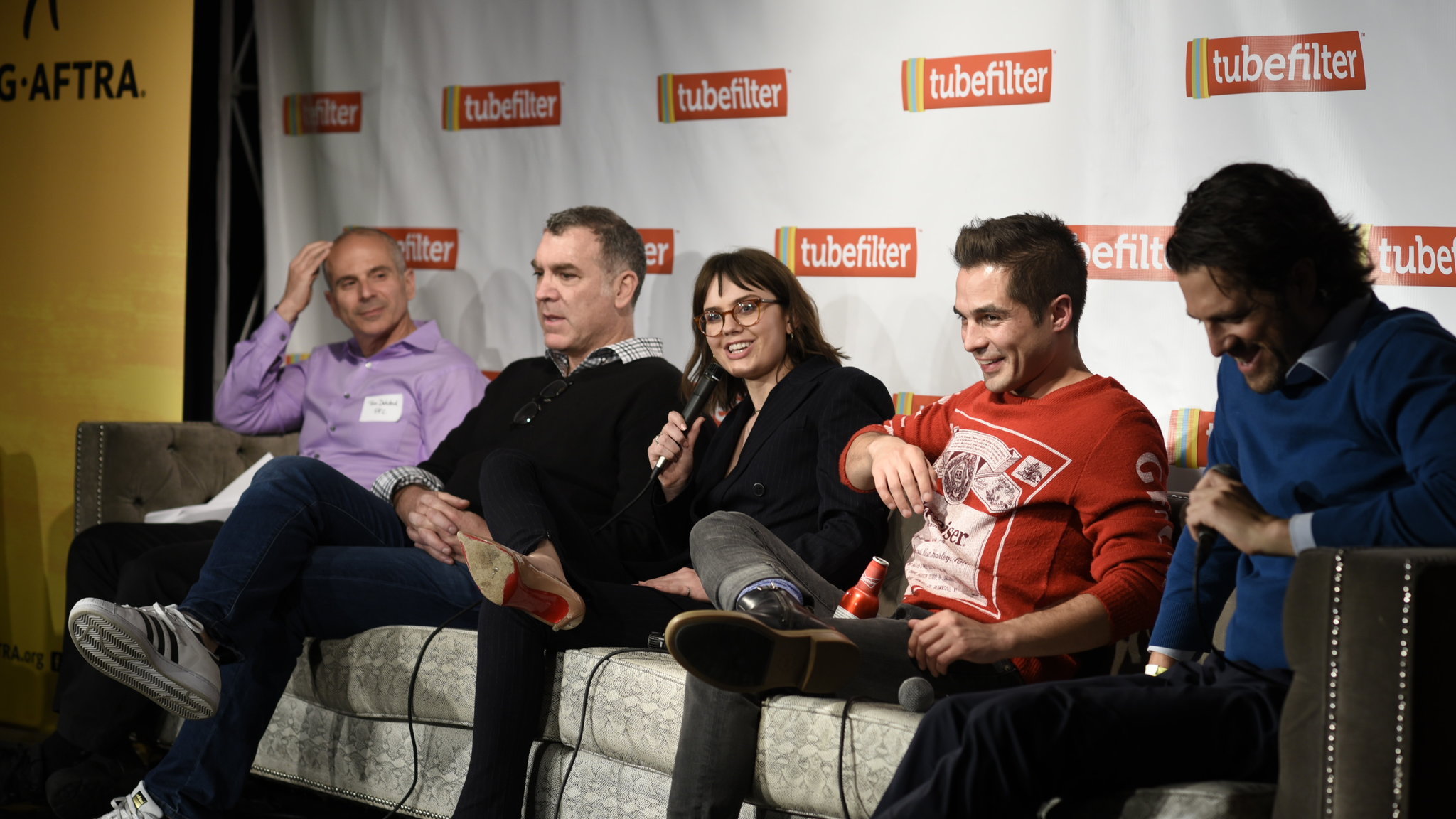 Panelists from left to right: David White | National Executive Director, SAG-AFTRA; Thomas Dahdouh | Director, Western Division, Federal Trade Commission; Larry Shapiro | CEO, Ensemble Digital Studios; Arden Rose | Actress, Digital Producer, and Author; Drew Baldwin | CEO, Tubefilter; Ruben Ochoa | VP, ScaleLab and Head of Disruptiv Agency