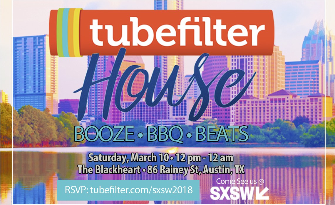 BOOZE. BBQ. BEATS. Those are at least three of myriad reasons you should be joining us at the Tubefilter House at SXSW 2018. Some of the others include the fact we’ll be there with creators, brands, marketers, and industry execs, along with our friends from Warner Bros. Digital Networks, Collab, and Popchest to host you for a variety of different events throughout the day on Saturday, March 10, 2018.