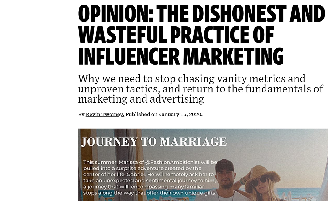 This past Wednesday, influencers and influencer marketers alike (myself included) went into an uproar because of an Ad Age article titled Under the Influence: The Dishonest and Wasteful Practice of Influencer Marketing.