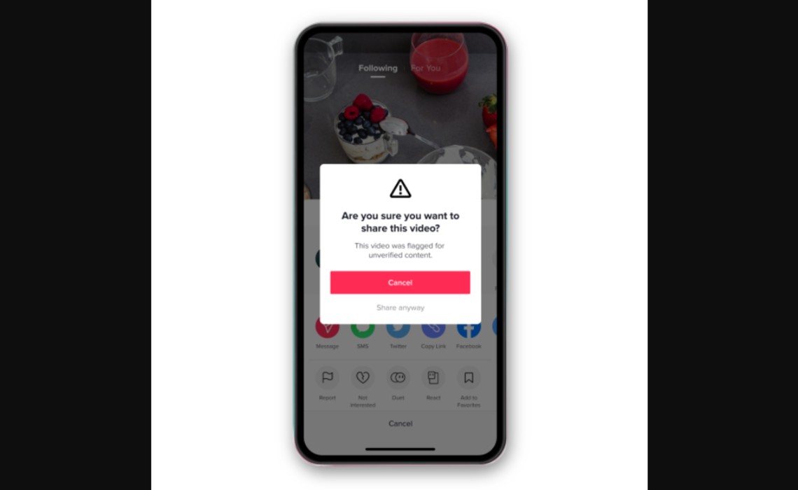Today, however, the company is going a step further by placing a banner on videos that have been reviewed by fact-checkers but cannot be conclusively validated. Now, if a viewer attempts to share a flagged video, they will receive a prompt reminding them that the content is unverified, with options to ‘cancel’ or ‘share anyway’. At the same time, creators will receive notifications that their videos have been flagged, TikTok says.