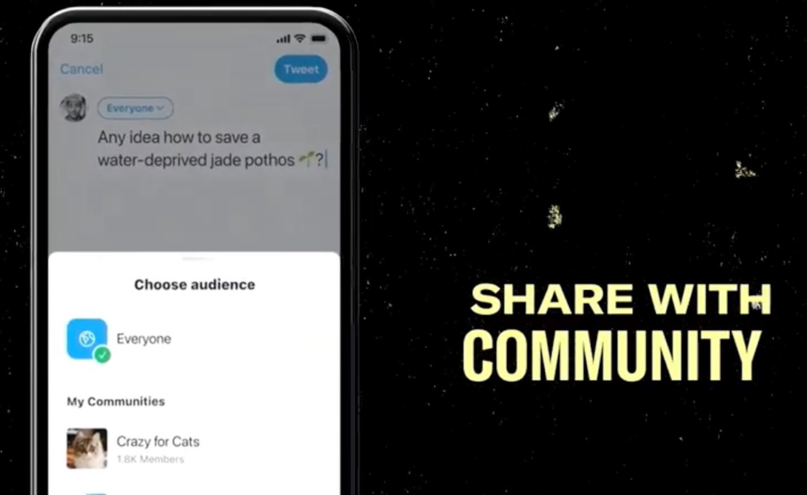As for Communities, that’s another forthcoming feature unveiled today. Mockups show that users will be able to create and join groups about specific topics, and then share selected tweets only to those groups. Basically, the Twitter equivalent of Facebook Groups or a Discord server: