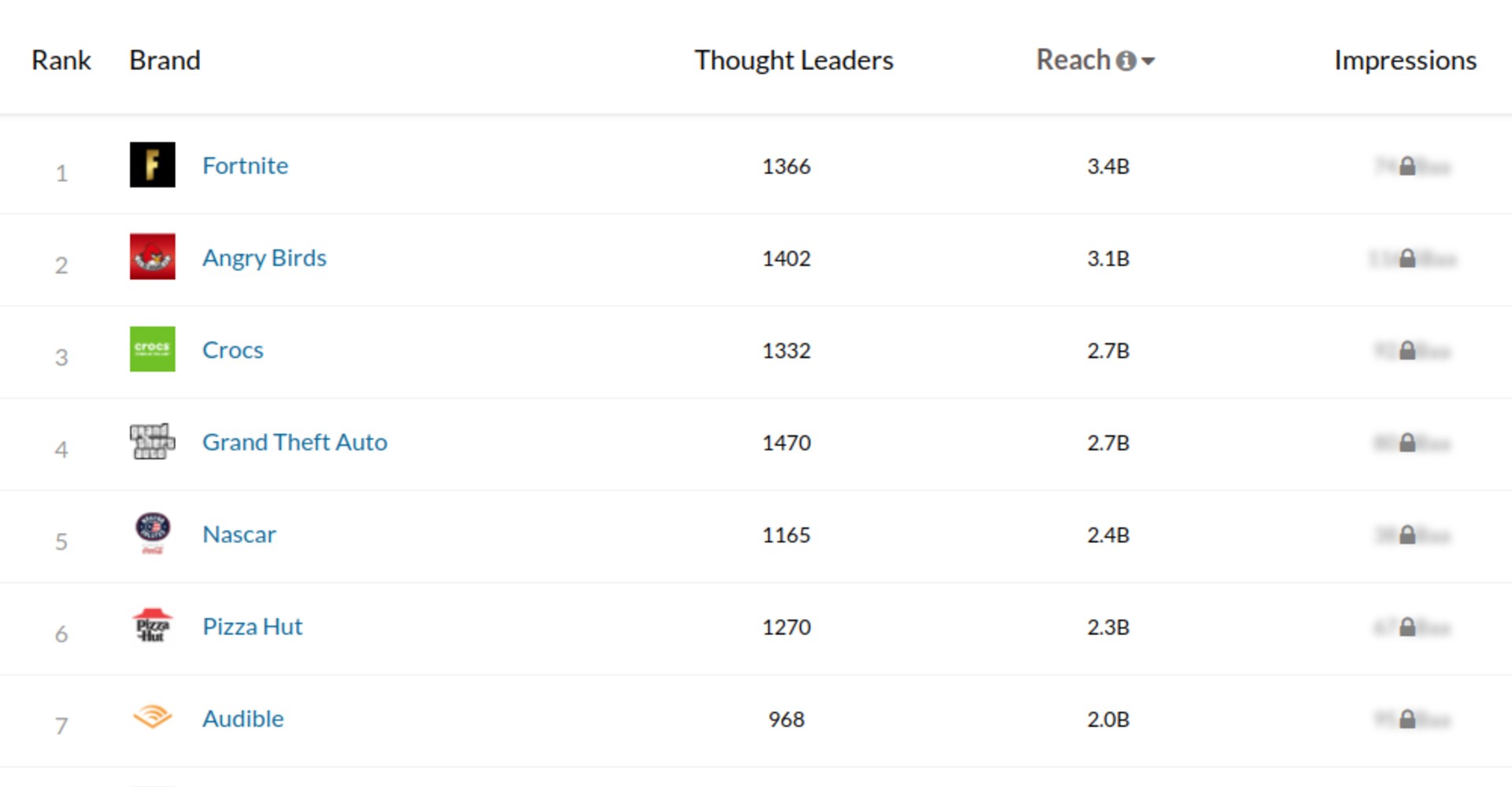 The company also furnishes three free leaderboards that track the brands who most frequently harness influencer marketing on YouTube (pictured above), podcasts, and in email newsletters.