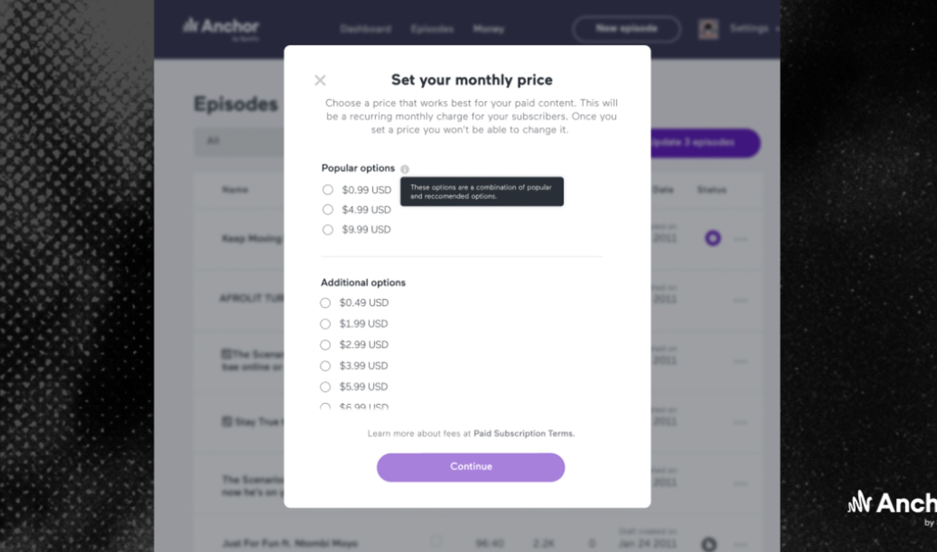 You can check out a video detailing how to set up podcast subscriptions in Anchor right here: