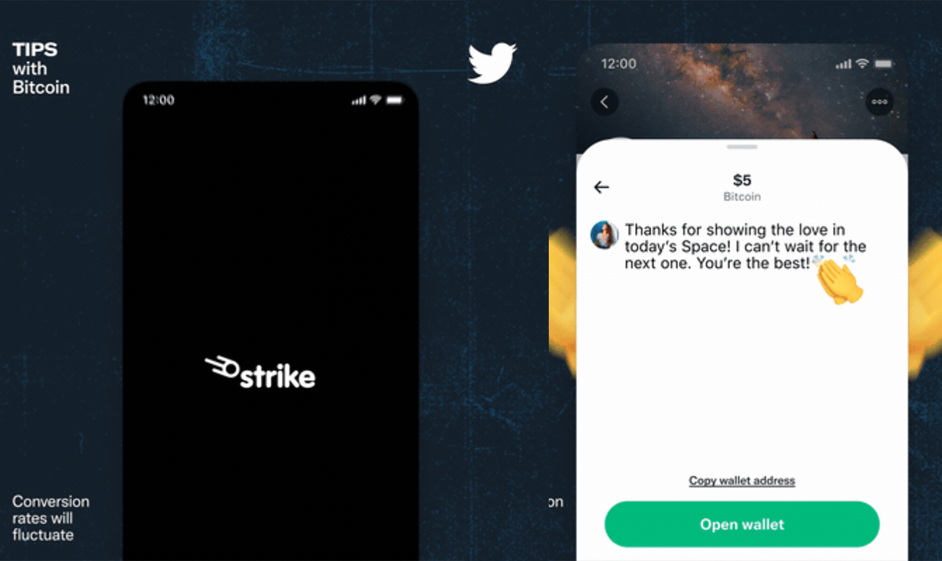 Strike does not charge a transaction fee; Twitter, meanwhile, has said it will not take a cut of Tips at all, whether they’re paid in crypto or traditional currency–so any funds sent to creators will actually 100% go to those creators.