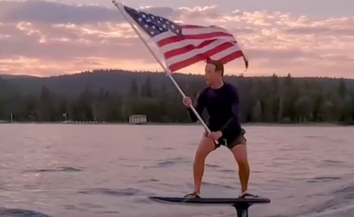 Zuckerberg, meanwhile, has stopped talking about controversies and snafus in his blog posts and social media. These days, he’s posting things like an improbable image of him skimming across a lake on a hydrofoil while waving an American flag. As you do.