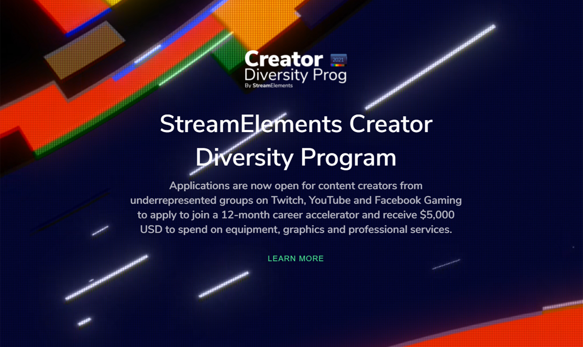 The program is intended to help BIPOC, LGBTQ+, disabled, and women creators further their content creator careers by providing them with professional livestreaming “services, equipment, support, and mentorship,” StreamElements says.