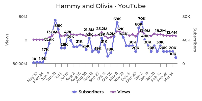 That level of consistent content production has helped push Equale’s channel to nearly 100 million views and over 100,000 new subscribers each month. Those are career numbers, but Equale says making videos is more than a job. He and Sarah consider it a “social responsibility,” he says, because of the amount of messages they’ve received from people whose lives have been brightened by Hammy and Olivia.