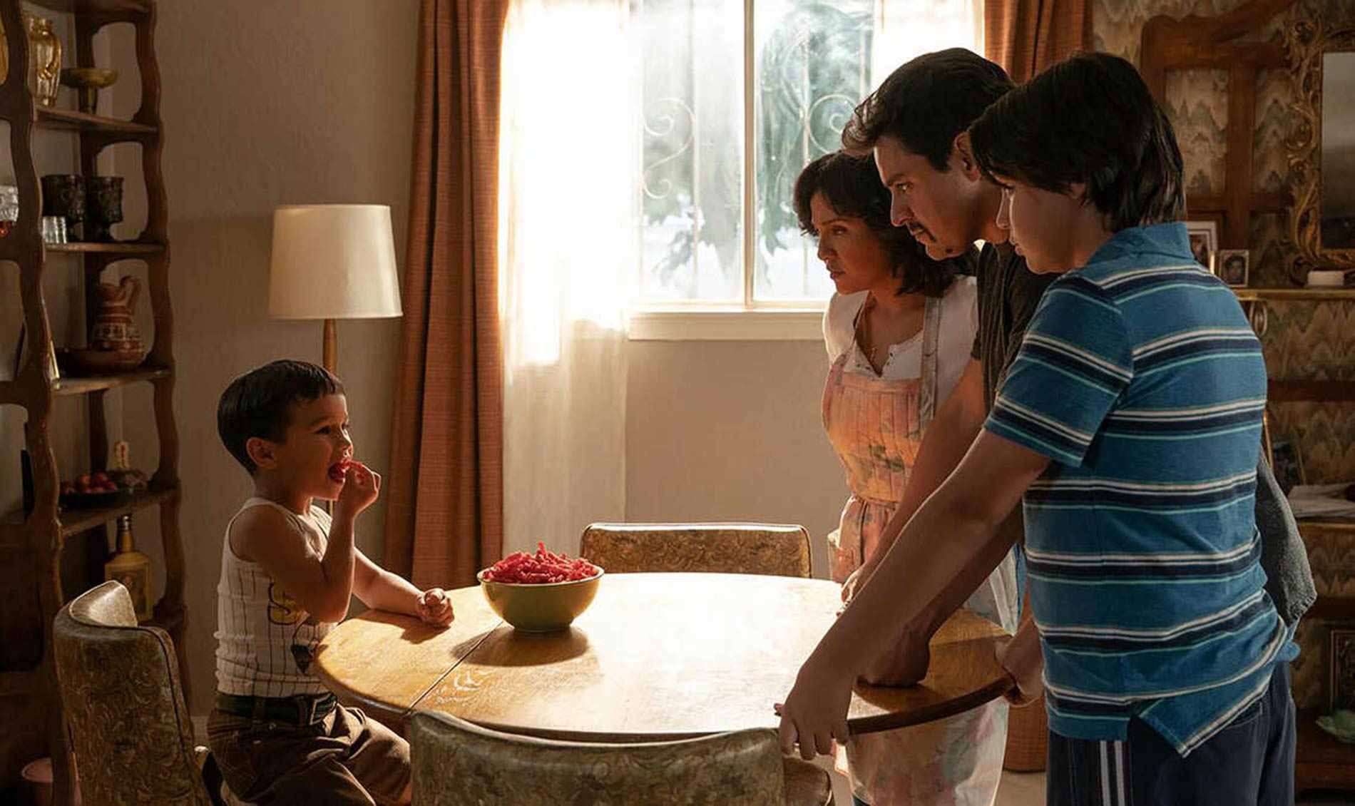 Flamin’ Hot, now streaming on Disney+ and Hulu, tells the story of Richard Montañez (Jesse Garcia), who claims to have invented Flamin’ Hot Cheetos. Brice plays Montañez’s son Steven, and told TIME his favorite scene to film was the one where Steven inspires Montañez with his love of spicy food. As the Montañez family is eating elote, Steven tells his father that the seasoning on his “burns.”