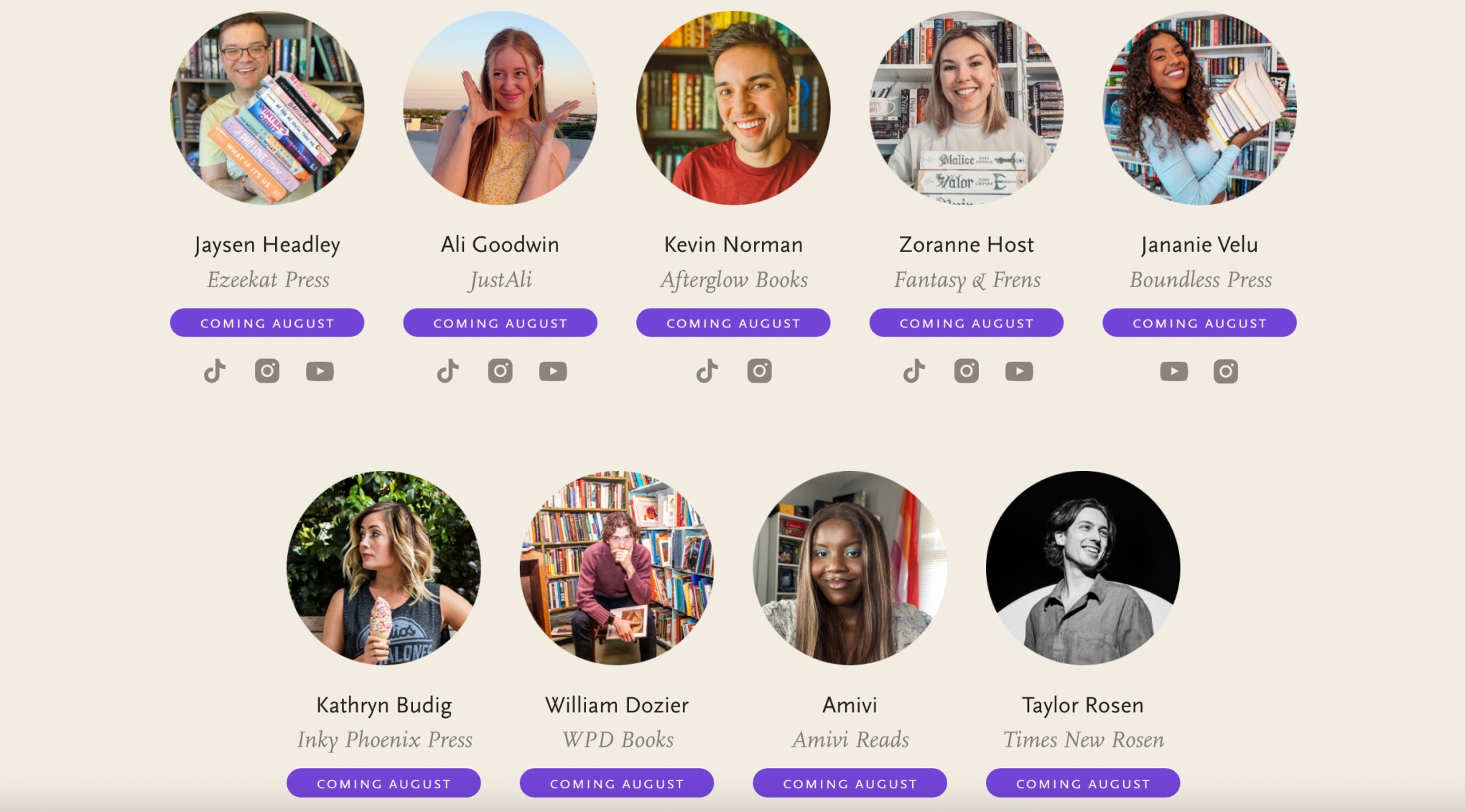 The leaders of Bindery’s communities will include some #BookTok notables, such as Jaysen Headley, but the company will also branch out to the other platforms where consumers collect literary recs. Kathryn Budig, for example, is a book club founder with a significant Instagram following, while Ali Goodwin discusses fantasy romance books on YouTube. Some creators who have partnered with Bindery, such as Zoranne, have shared the news on social media: