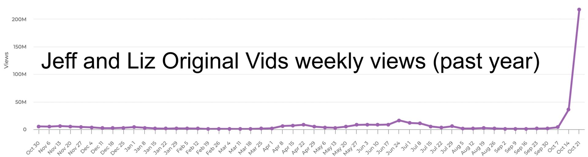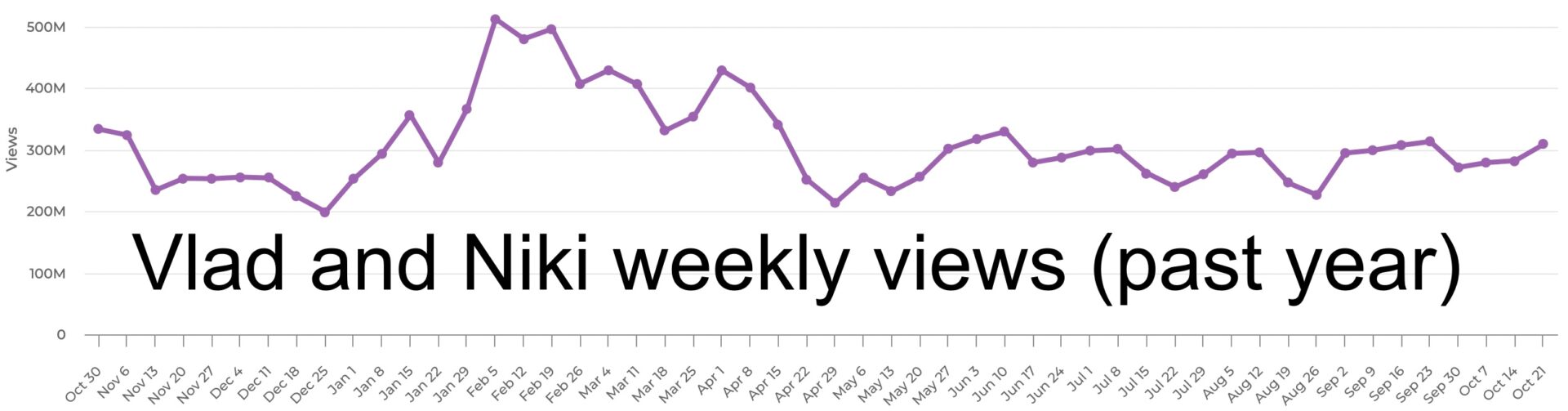 As you can see from the above chart, Vlad and Niki’s fortunes seem to rise and fall at dramatic intervals. It’s hard to make predictions about where this channel will end up in our U.S. Top 50, but its presence in the ranking is all but guaranteed. No other family vlogs are quite on Vlad, Niki, Nastya, and Diana’s level, and their ability to mix formats and appeal to international audiences will probably keep them on top as the calendar turns over to November.