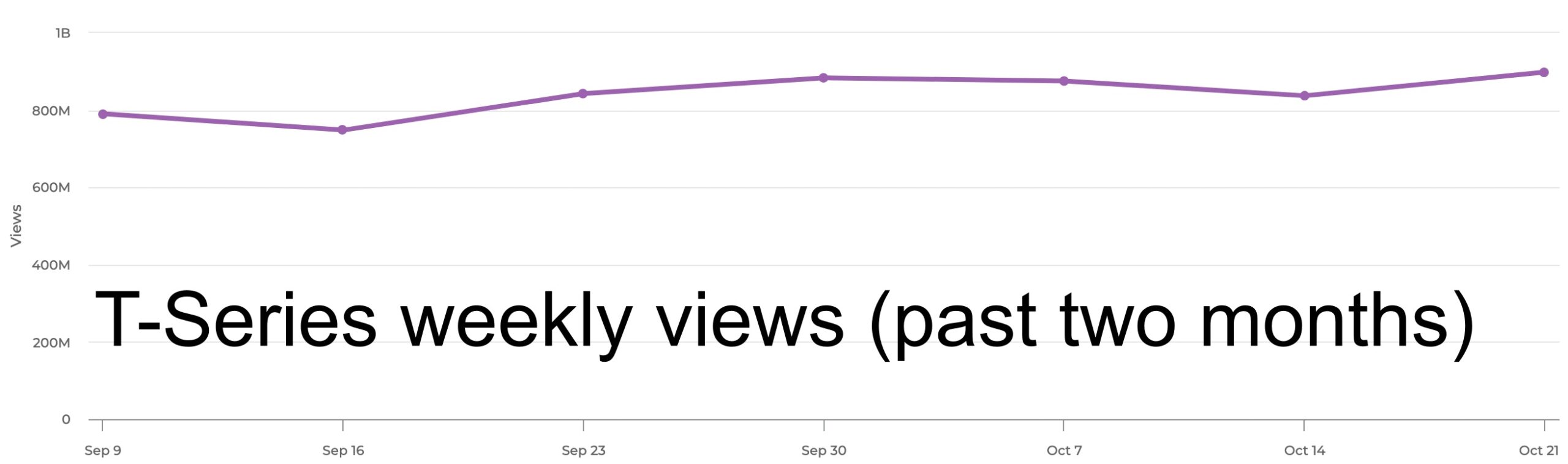 Billions of monthly views have become commonplace for T-Series, but the Indian music hub has seen its monthly traffic go up since the start of September. It’s closing in on one billion weekly views, a benchmark only achieved by a select few channels. (T-Series, MrBeast, and CoComelon — that’s the list.)